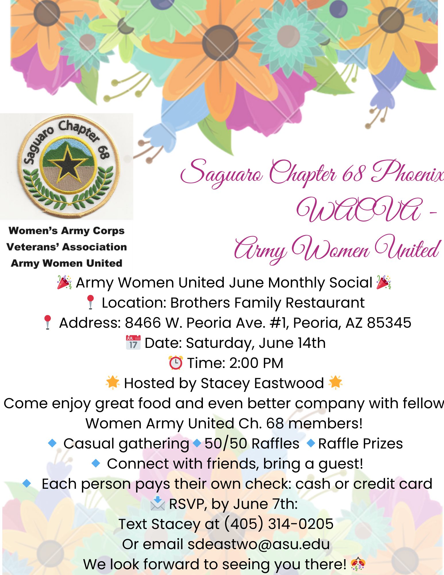 🌟 Come enjoy great food and even better company with fellow Women Army United Ch. 68 members!
