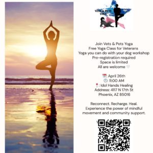 Dog yoga workshop – limited space so pre-registration is required – Only a limited number of dogs are allowed, please inquire if you want to bring a pet. Learn poses you can do at home with your dog.