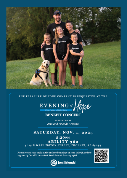 | Evening of Hope Benefit Concert to support Joni and Friends AZ Warrior Getaways. The evening will consist of a meal, dancing and a Nashville inspired show with songwriters Tommy Karlas and Joel Shewmake. A Night to share hope and the mission of Warrior Getaways with a community that loves Veterans. We are encouraging western wear for the evening. |