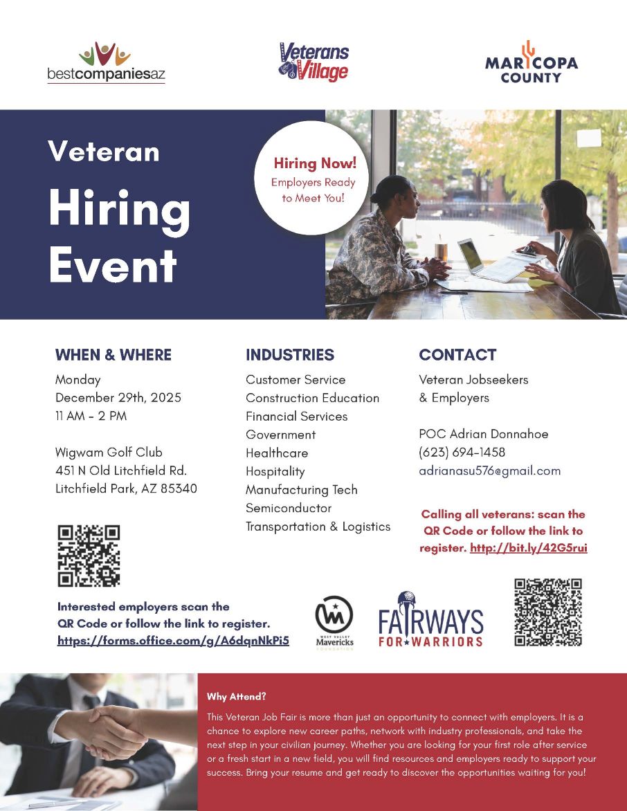| Calling All Veterans and their Family Members! Here is a Hiring Event “Just For You”! Come meet some Great Employers and find that Meaningful Job you Deserve! |