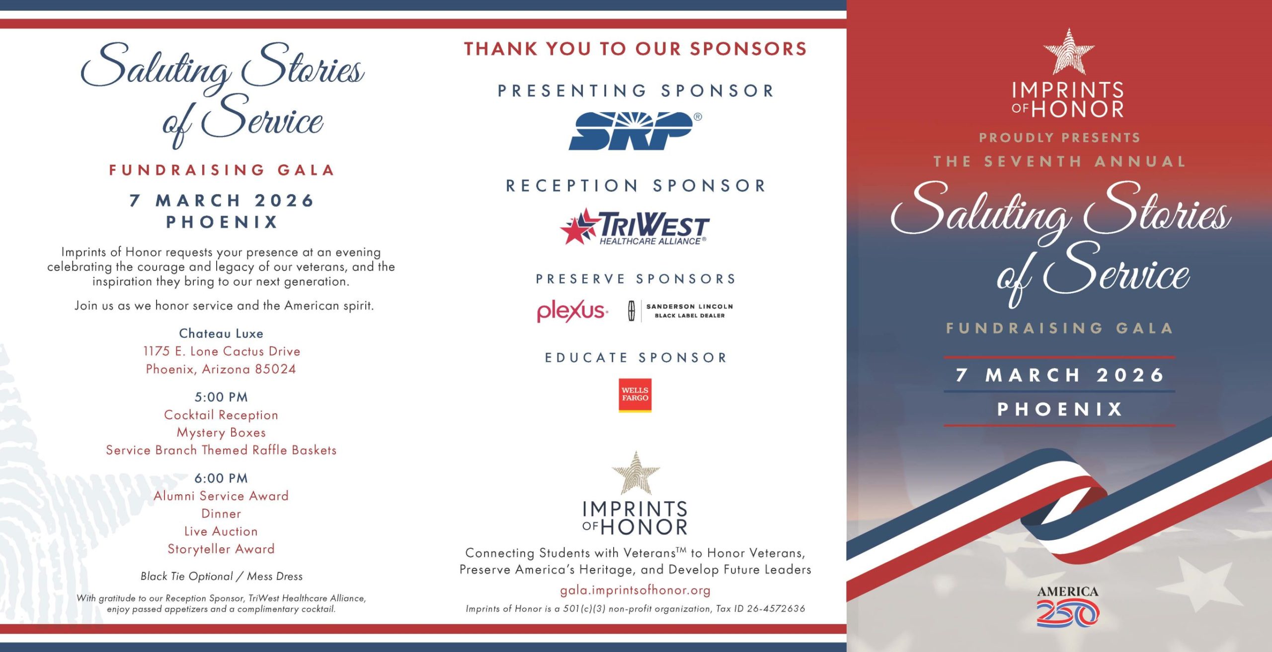 | For 250 years, our nation has stood for life, liberty, and freedom. For 22 years, Imprints of Honor has proudly Connected Students with VeteransTM to honor veterans, preserve America’s heritage, and develop future leaders. Join us as we honor service and the American spirit. |
